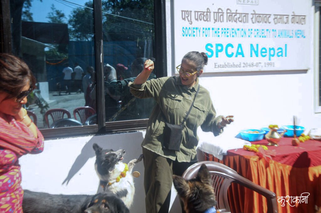 कुनै औपचारिक कार्यक्रम नभएपनि उनले एसपीसीएका करिव डेढ सय कुकुरहरुसँगै तिहार मनाएकी हुन् ।