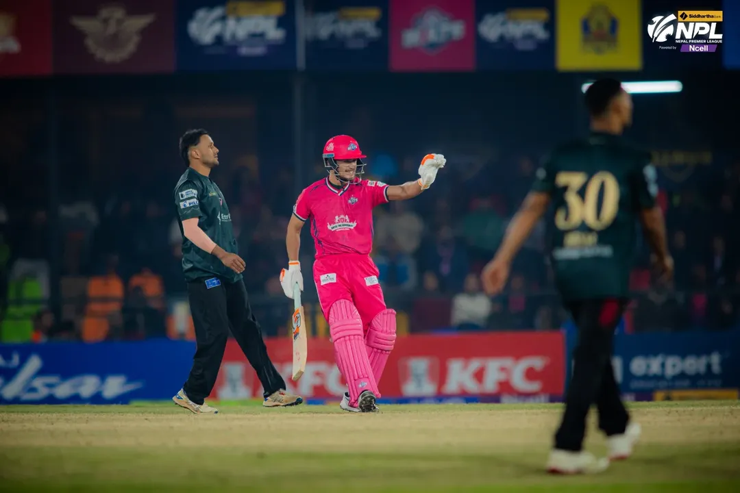 पहिले ब्याटिङ गर्दै समिर वर्माको अविजित अर्धशतक र दीनेश खरेलको स्थिर सुरुवातले पोखरालाई १५५ रनसम्म पुर्यायो। जवाफी खेलेको जनकपुरमा वायन पार्नेलले ५० रन बनाए पनि अन्य ब्याटर चल्न नसक्दा टोली लगातार तेस्रो हारबाट बच्न सकेन।